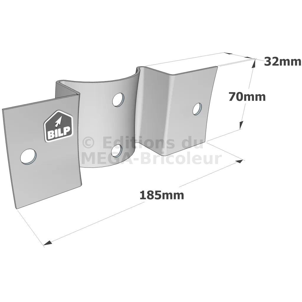 Equerre pour bois ronds - à fixer sur des bois ronds - 185x70x32mm - Réf. RFC80/120_30