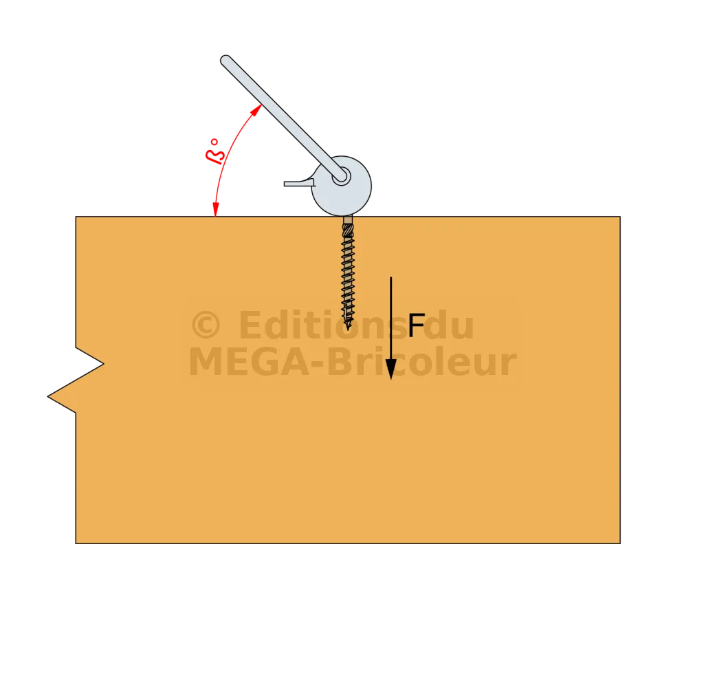 - Vis SSH installée avec un fraisage, perpendiculairement à la fibre du bois, et sollicitée avec un angle.