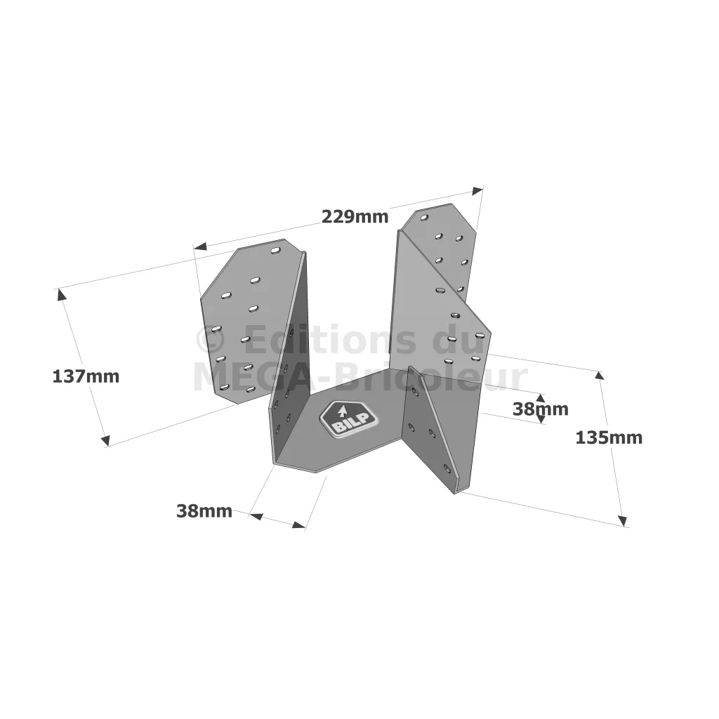 Etrier pour croupe : arêtiers doubles - Réf. THJA26_25