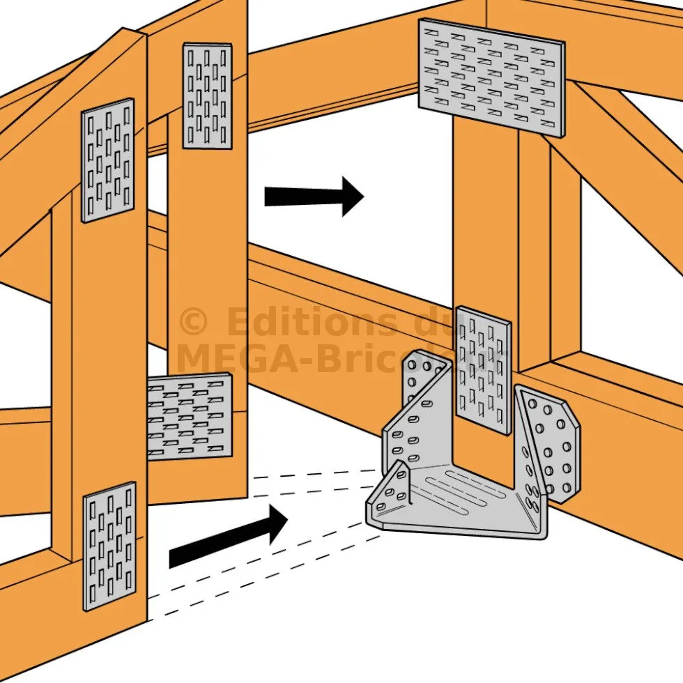 Assemblages de deux éléments : un arêtier et un empannon OU deux arêtiers sans empannon.