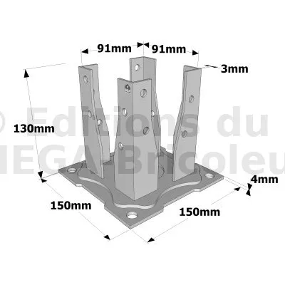 Le pied de poteau carré sur platine AG527P est préconisé dans la réalisation de petits ouvrages tels que les clôtures de jardin. Très facile à démonter, il est particulièrement adapté pour des structures temporaires. Le AG527P est à boulonner.