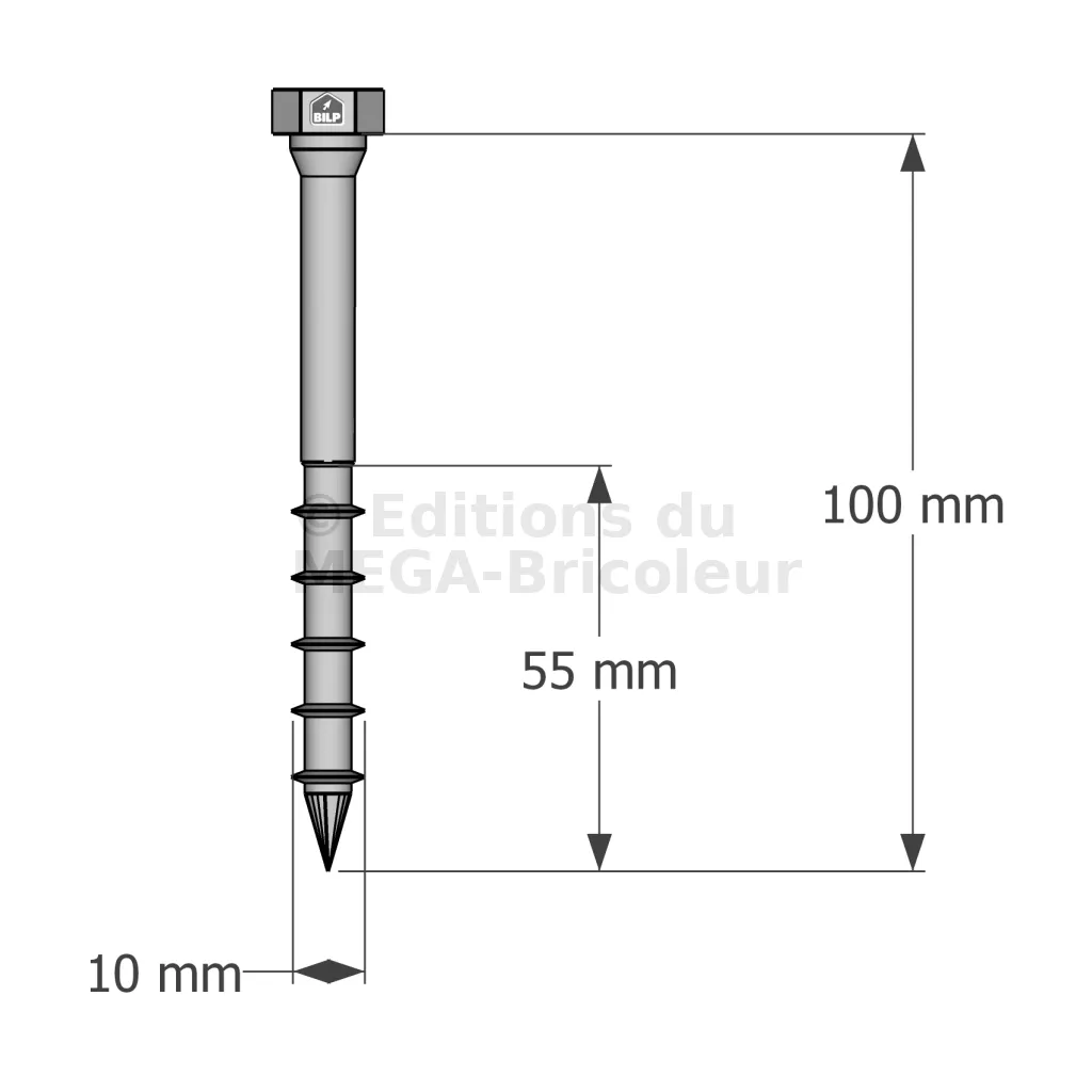 - Marquage de la tête incluant la longueur en mm facilitant le contrôle,