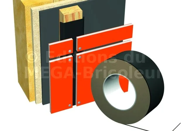 Bande d‘étanchéité et de protection pour chevrons, contre-lattes et liteaux en support de bardages ou panneaux de façade. Améliore l‘esthétique des parements en cachant l‘ossature secondaire (chevrons, contre-lattes ou liteaux).