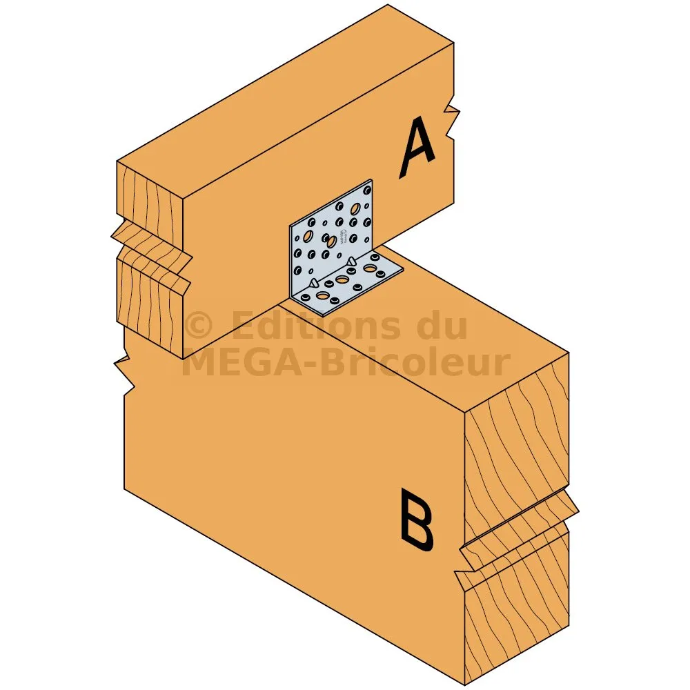 - Fixation bois/bois - type poutre/poutreAile A : 12 ; Aile B : 7 ; type : CNA Ø4.0x35 ou Ø4.0x50 mm - Assemblage avec 2 équerres