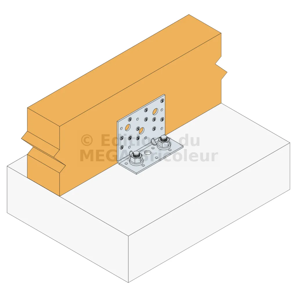 - Fixation bois/support rigide - type poutre/support rigideAile A : 12 - type : CNA Ø4.0x35 ou Ø4.0x50 mm ; Aile B : 2 - type : WA M12-104/5 - Assemblage avec 2 équerres