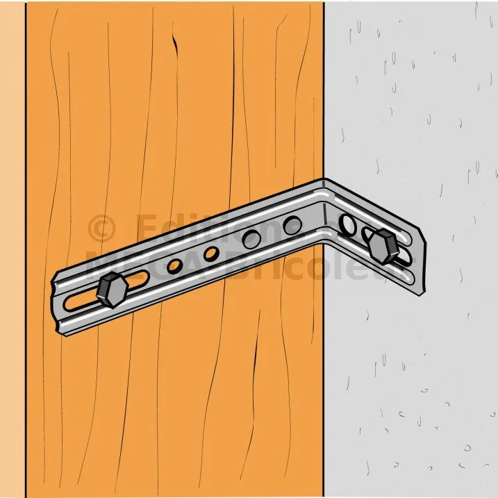 3. Si le support est en bois, l’équerre est aussi pointée ou vissée sur celui-ci,