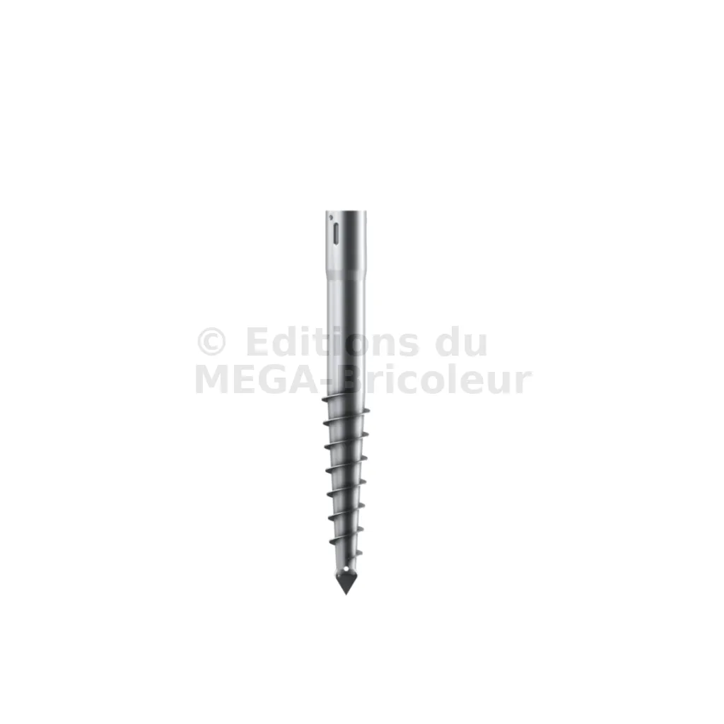- à l’une des extrémités une pointe “harpon” surmontée d’une partie en spirale pour pouvoir creuser le sol,