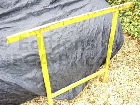 Pour confectionner le châssis 3/2 tréteaux lourds et 4 fers plats de 1500 mm sont nécessaires. Les fers sont posés sur le dessus des tréteaux et soudés.