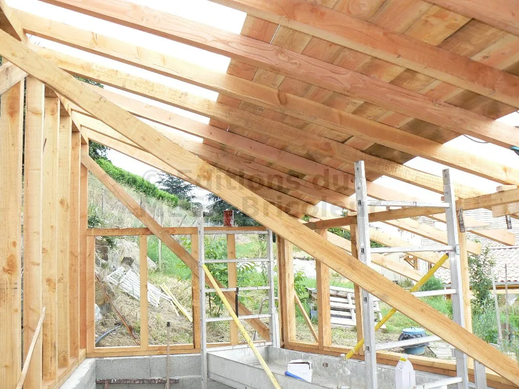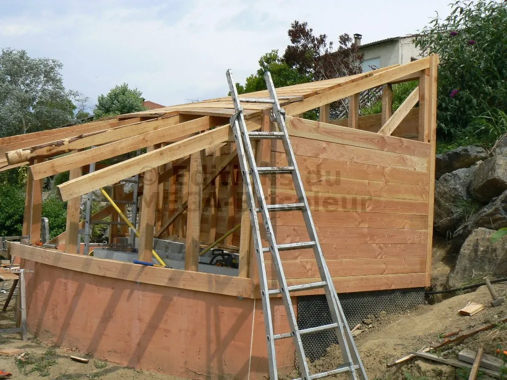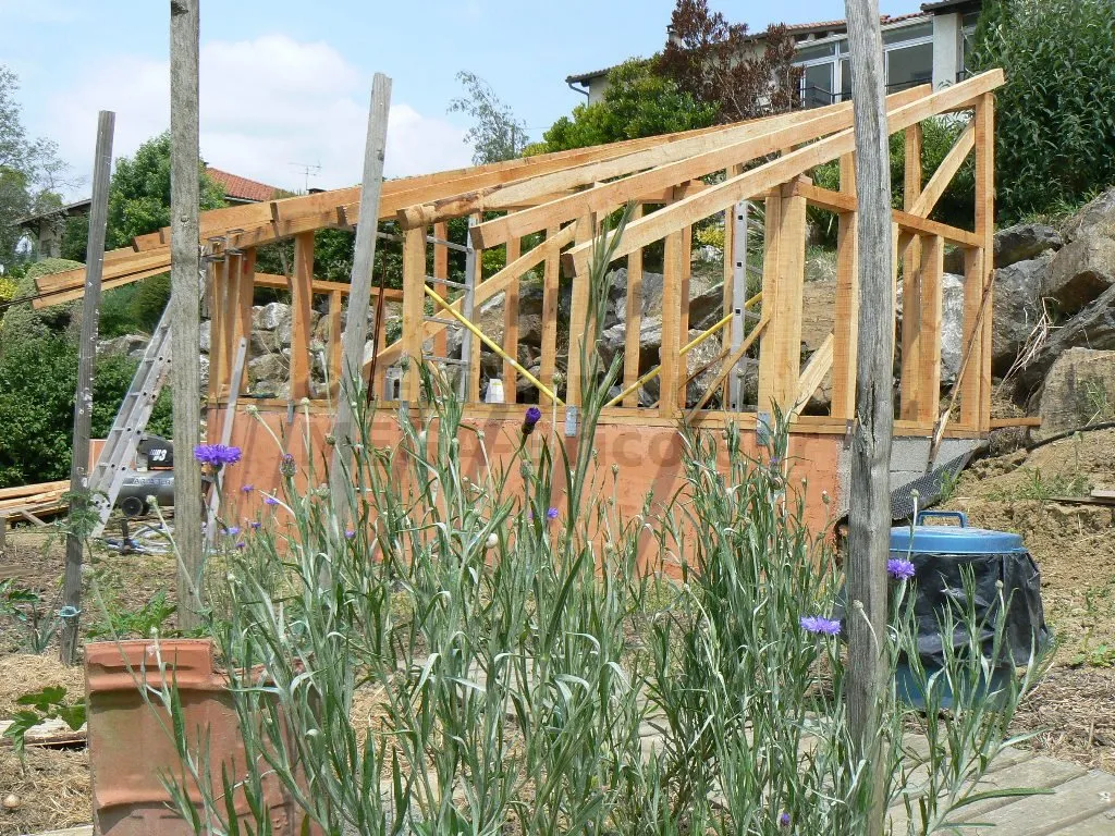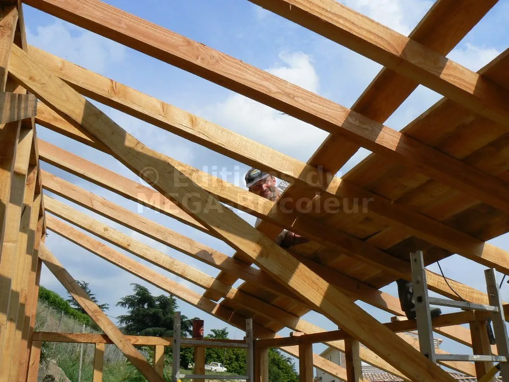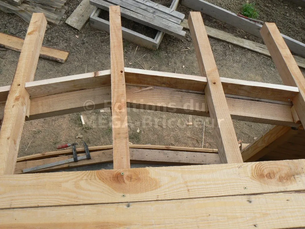 Les chevrons ont la même section que les montants et sont également écartés de 50 cm.