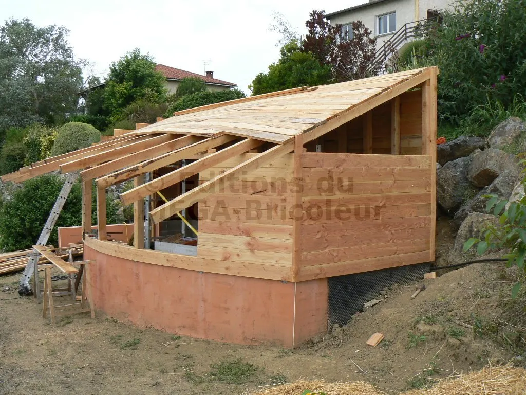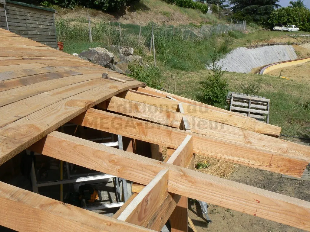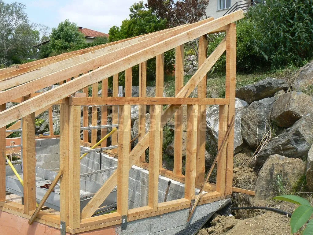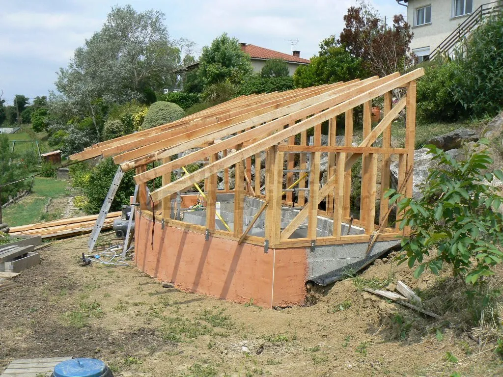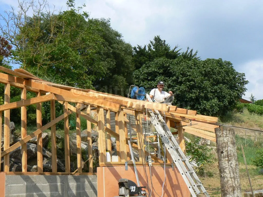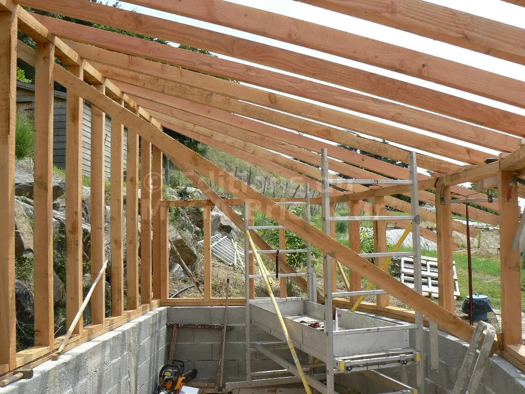 Les chevrons ont la même section que les montants et sont également écartés de 50 cm.