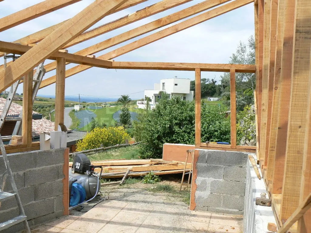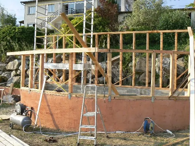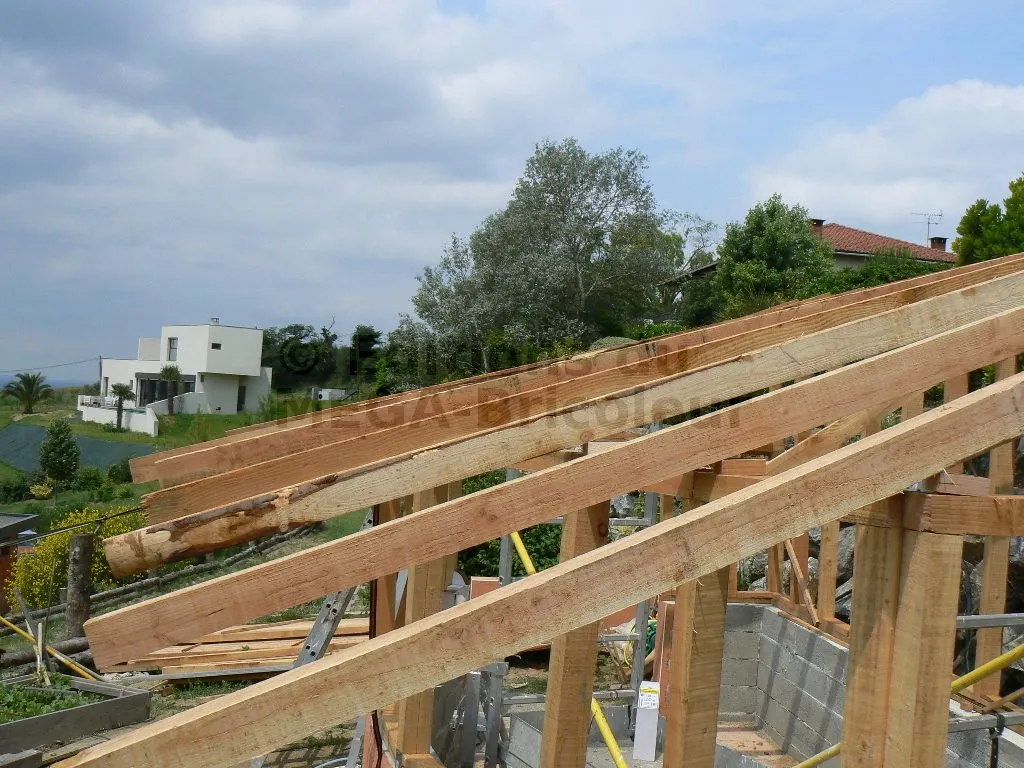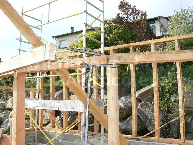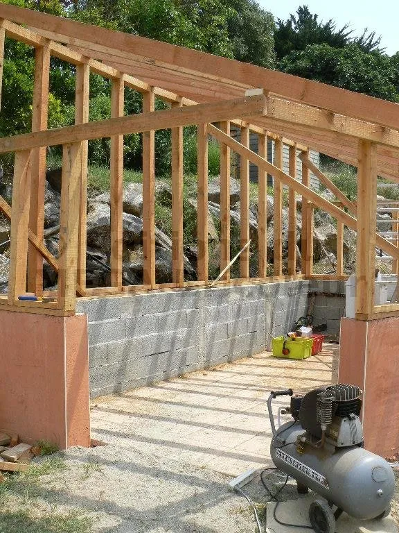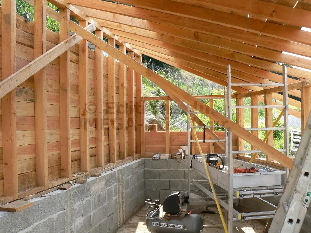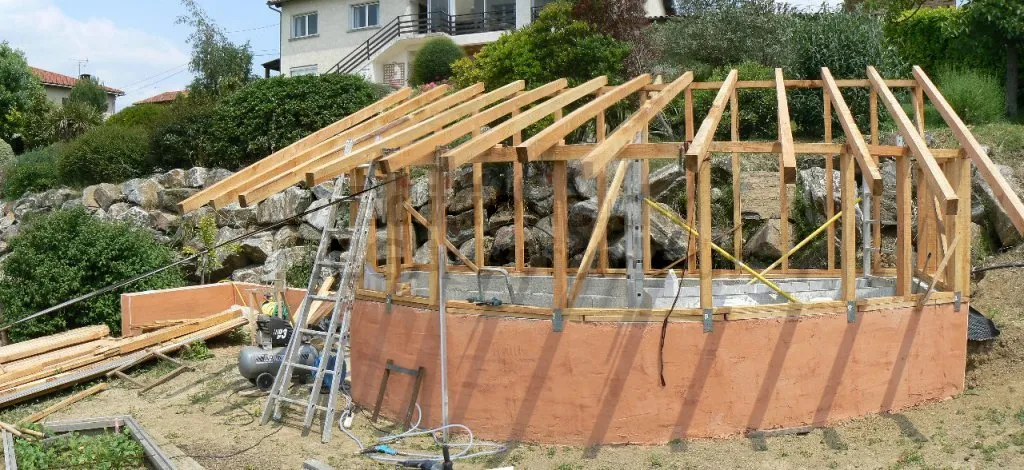 Les chevrons ont la même section que les montants et sont également écartés de 50 cm.