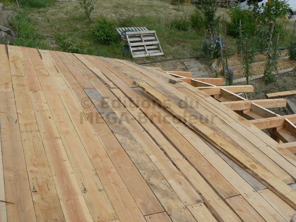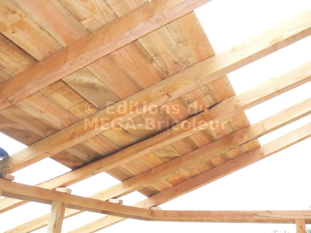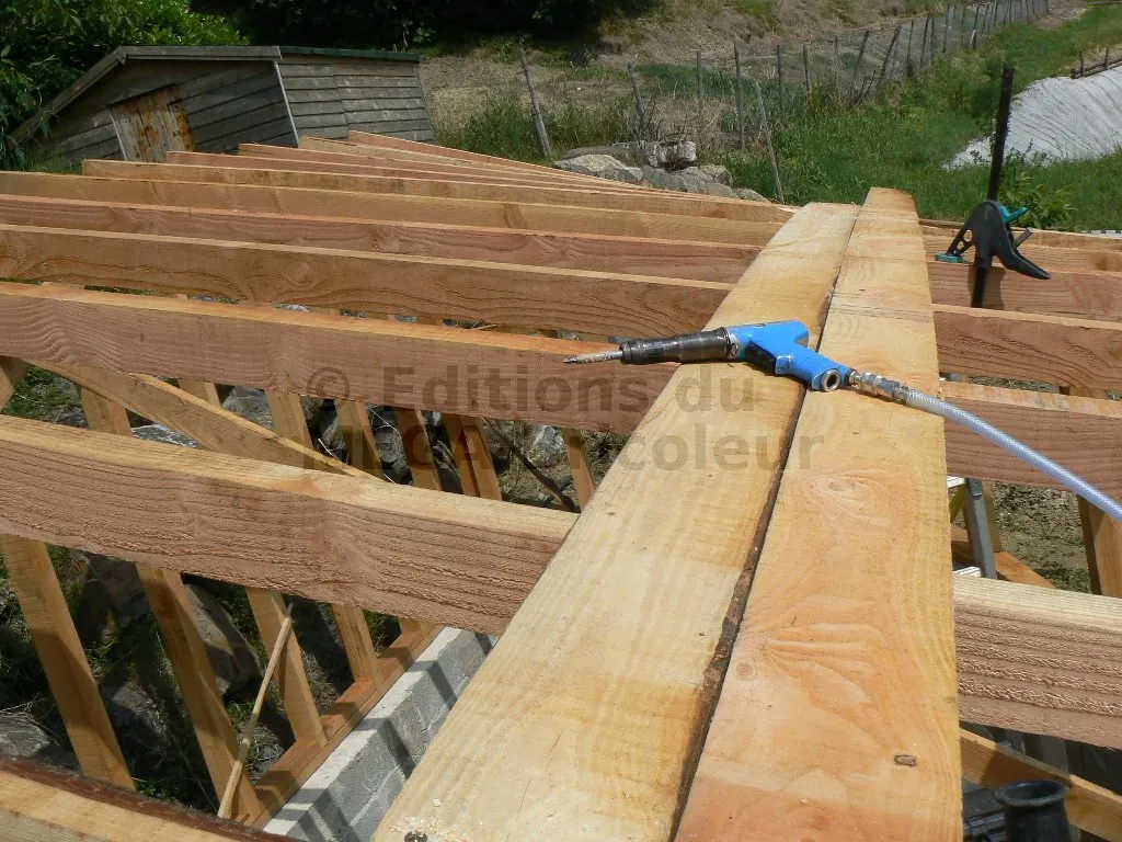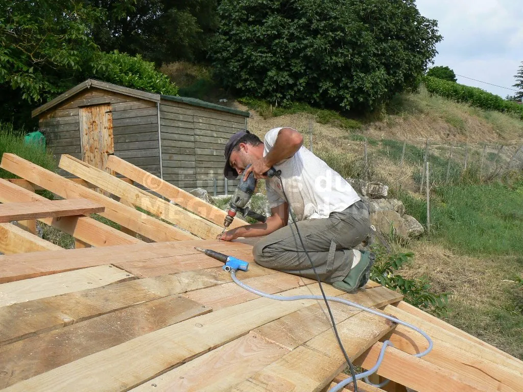 Les planches sont clouées ou vissées, bord à bord, sur les chevrons.