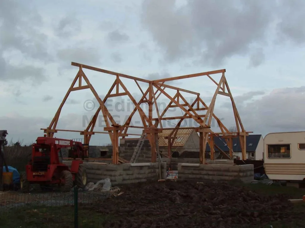 Salut. Ca fait un bon moment que je n’ai pas donné de mes nouvelles. Grâce à mon chantier, j’ai trouvé du travail dans la construction bois. Donc, je vais vous montrer le travail qui avance pas aussi vite que je l’avais prévu car ma vie de famille me l’a obligé. Mais je ne regrette rien. Un peu de retards. Une femme, trois enfants dont un de neuf mois, cela traduit.