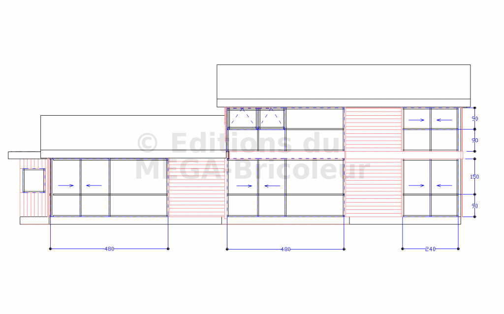 - L’atelier. IN-DIS-PEN-SA-BLE pour les autoconstructeurs. Pas besoin de vous faire un dessin. 20m² au moins. Pour un atelier avec de grosses machines, combinée-bois, plus de 40m². Dans ces cas-là, une annexe séparée de la maison peut être une bonne solution. Personnellement, mon atelier jouxte un abri-voiture couvert mais non clos de 50m², séparé par une porte de garage. Je peux facilement sortir mes machines lorsque j’usine de longues pièces de bois, même s’il pleut. Heureusement, mes voisins sont compréhensifs. S’ils me lisent, je les remercie à nouveau.
