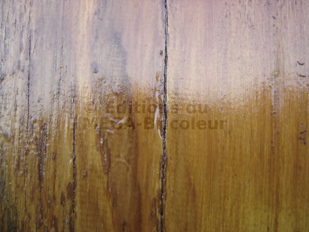 Je pense que les tanins présents dans le Chêne et le Douglas provoquent une réaction chimique avec la lasure qui nuit à son adhérence.