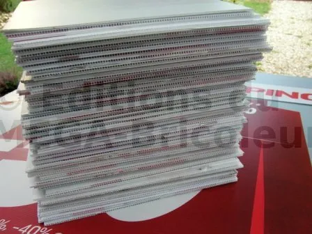 1 plaque alvéolée mesure 320 X 320 X 3 mm d’épaisseur soit 0,1024 mm2 pour une face mais cette plaque possède 2 faces
